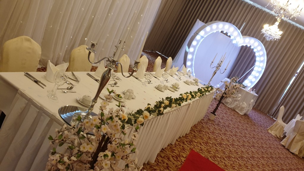 WEDDING LIGHT UP LOVE HEART ARCH WITH 3FT MR & MRS LETTERS SCRIPT STYLE – €550
