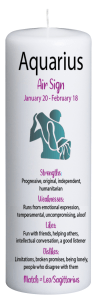 Zodiac Birth Sign Candle Aquarius – Fun traits of your birth sign will be sure to be the talking point of everybody who spots it on your shelf. Give a gift of one or more today! Price Includes Delivery