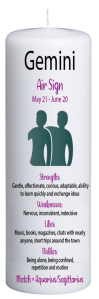 Zodiac Birth Sign Candle Gemini – Fun traits of your birth sign will be sure to be the talking point of everybody who spots it on your shelf. Give a gift of one or more today! Price Includes Delivery