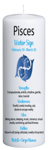 Zodiac Birth Sign Candle Pisces – Fun traits of your birth sign will be sure to be the talking point of everybody who spots it on your shelf. Give a gift of one or more today! Price Includes Delivery