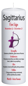 Zodiac Birth Sign Candle Sagittarius – Fun traits of your birth sign will be sure to be the talking point of everybody who spots it on your shelf. Give a gift of one or more today! Price Includes Delivery