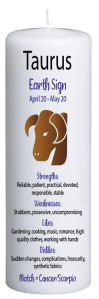 Zodiac Birth Sign Candle TAURUS – Fun traits of your birth sign will be sure to be the talking point of everybody who spots it on your shelf. Give a gift of one or more today! Price Includes Delivery