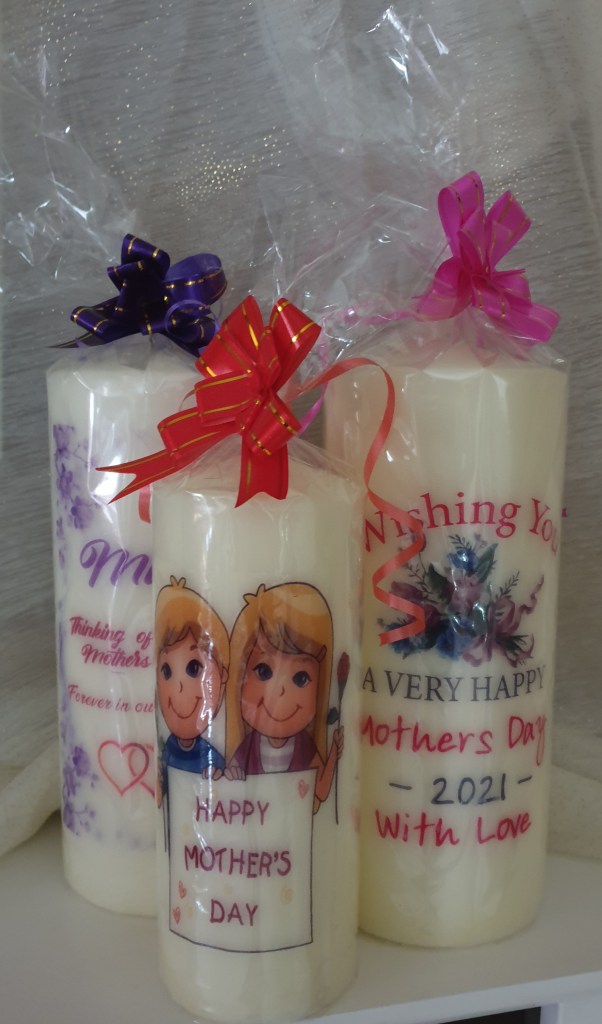 Large Candles are 250mm X 78mm and can customized to your spec and Beautifully Gift Wrapped