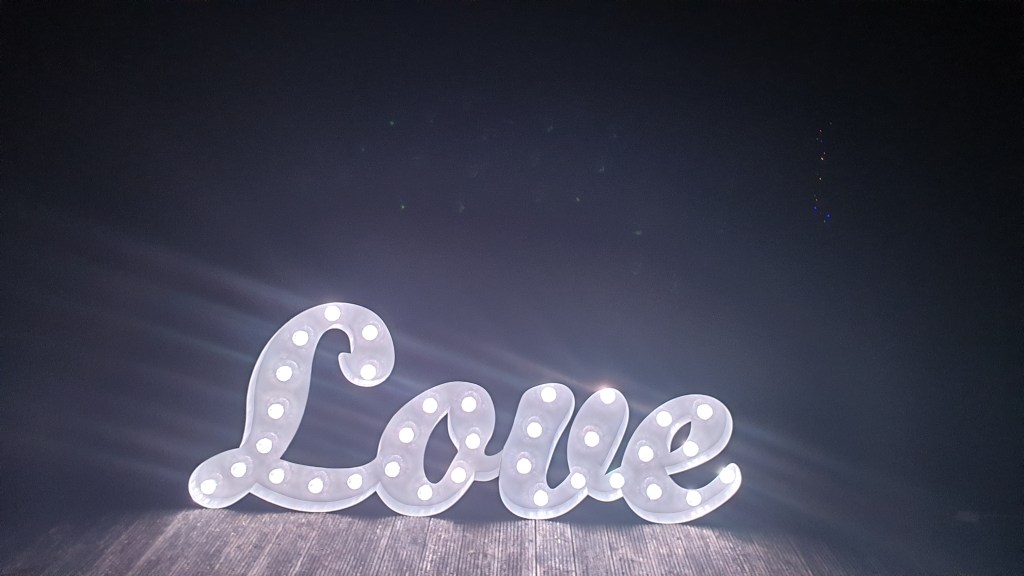Add touch of class to weddings with this stunning font style. White metal 3ft tall Joined writing style light up love set with LED lights Can be set to any colour to suit your theme.
