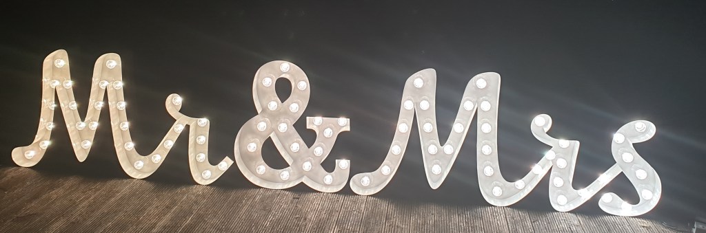 3ft High 14ft Wide light up script style Mr & Mrs letters