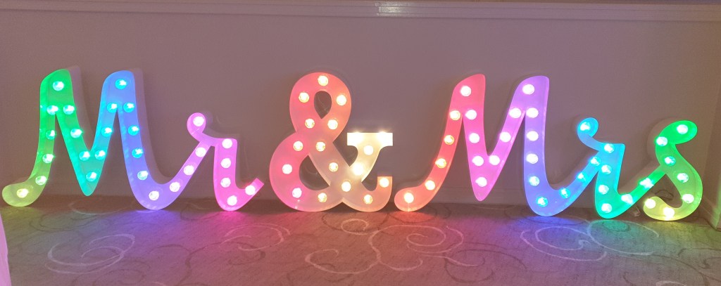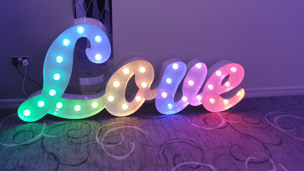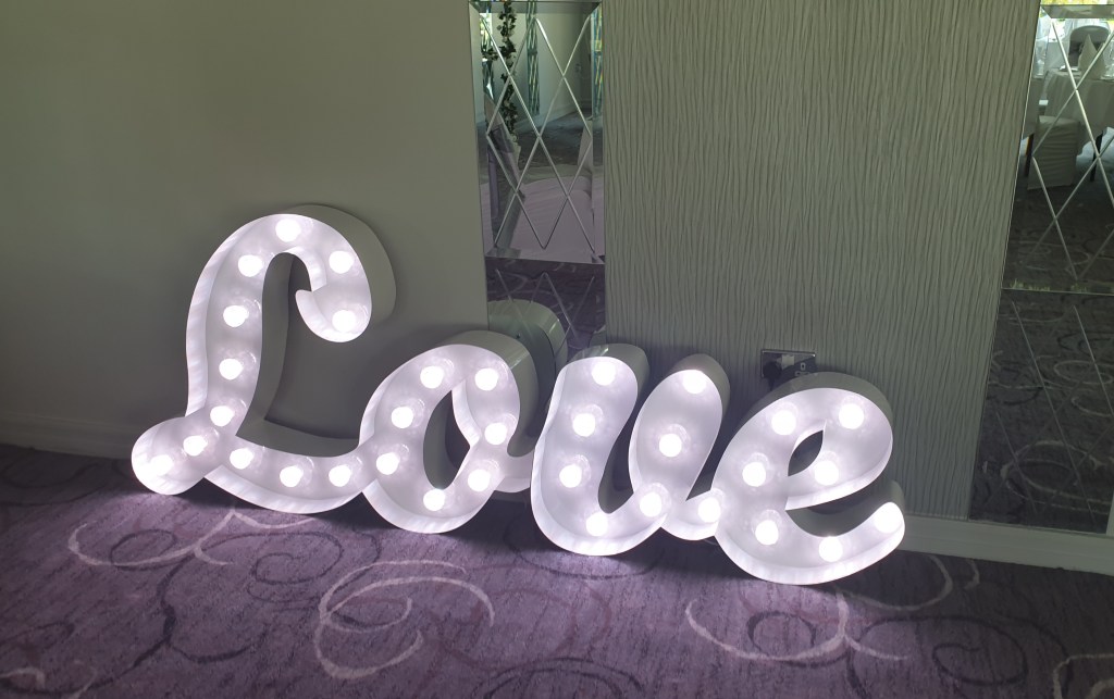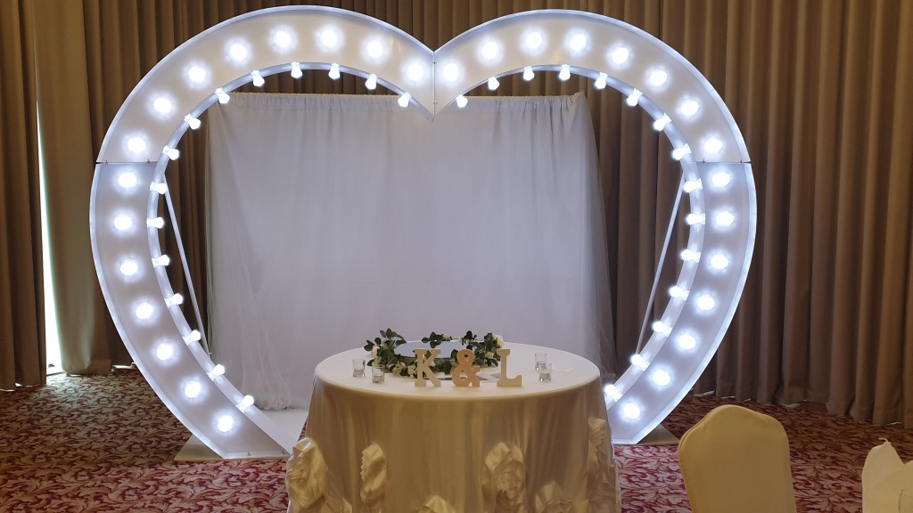 We have stunning light up letter and love heart arch to provide extra glam to your wedding day.